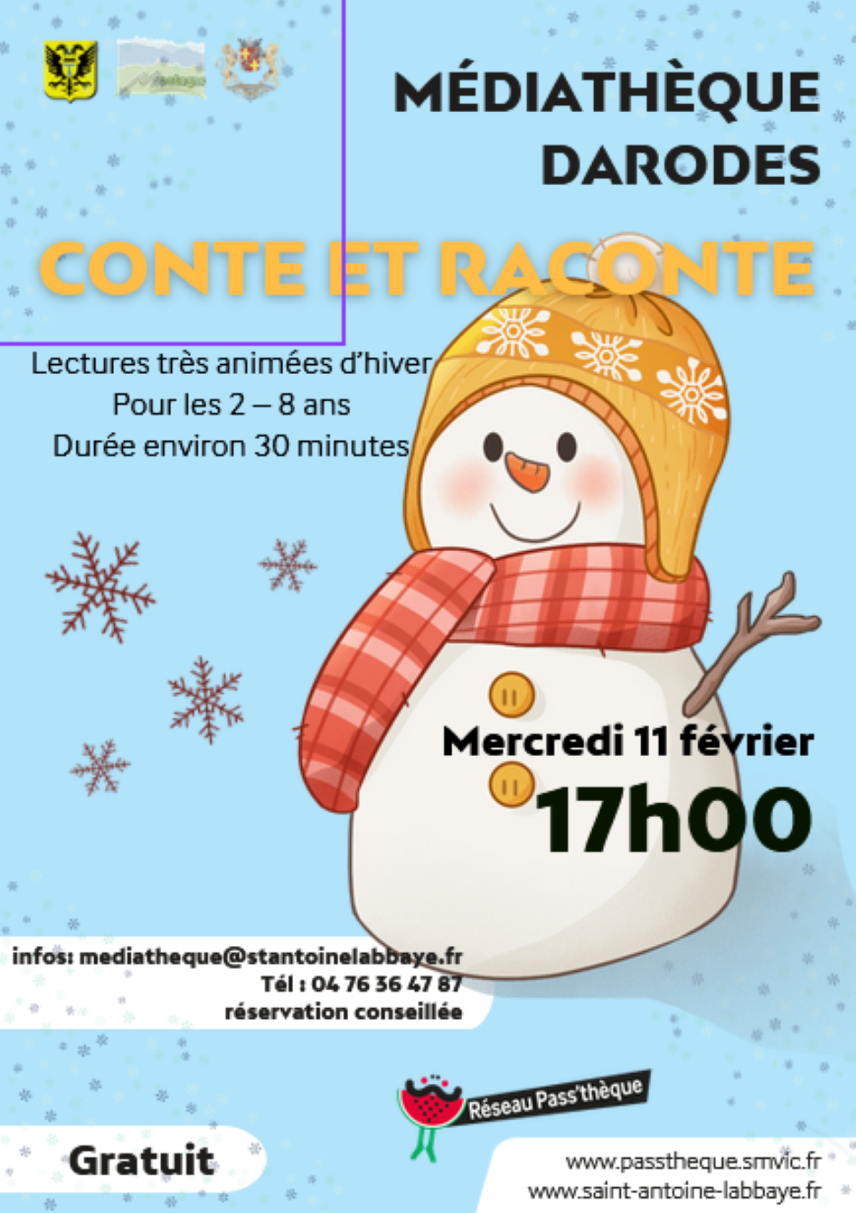 Lectures animées pour les 2-8 ans à la médiathèque Darodes à St Antoine l'Abbaye.