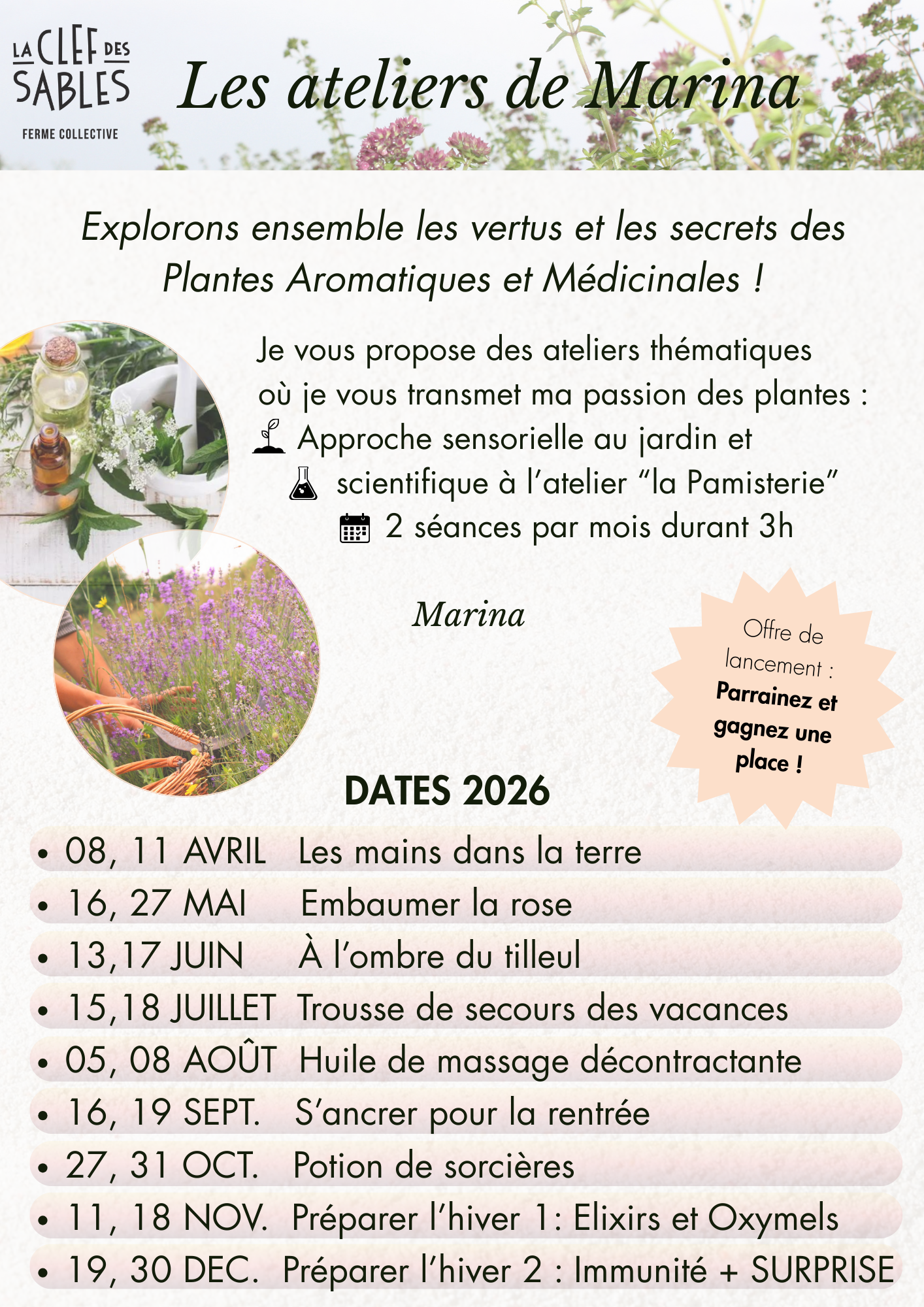 Ateliers thématiques : approche sensorielle au jardin et scientifique à l'atelier "la Pamisterie".